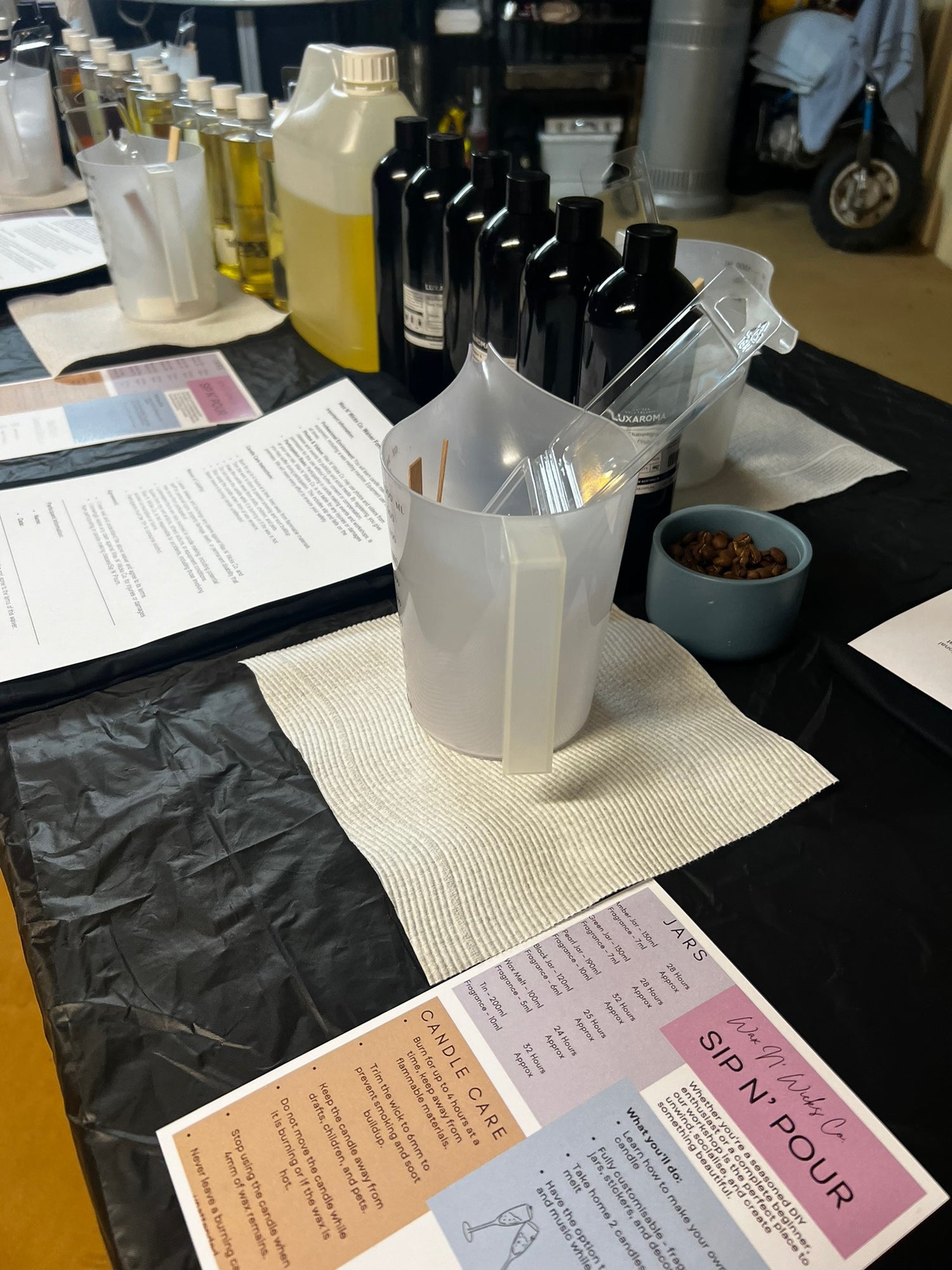 At Wax N’ Wicks Co., we believe candle-making should be an experience. Our Sip N’ Pours bring people together to create their own custom candles while enjoying a relaxed, fun atmosphere. Whether you're a first-timer or a candle enthusiast, you'll love getting hands-on with fragrance blending and design.